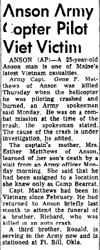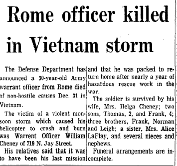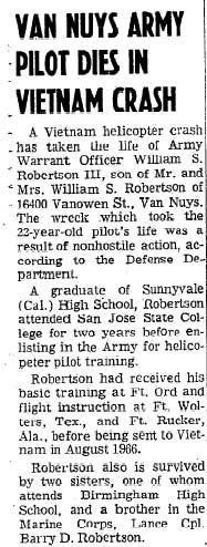Flying lead out of Duc Hoa carrying 25 ARVN troops into horseshoe shaped bunker complex. Killed on liftoff from LZ. |